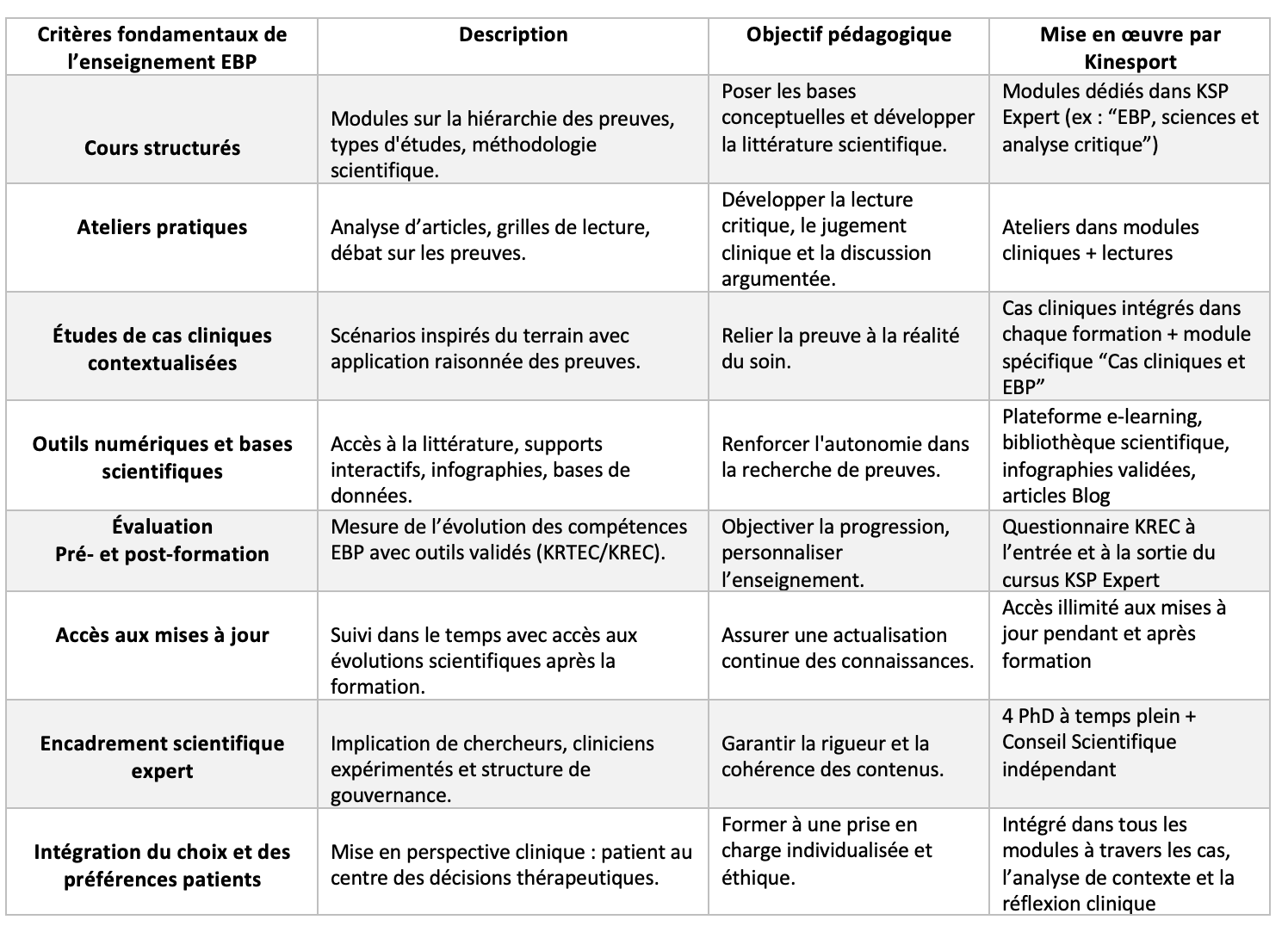 Dans le cursus KSP Expert, Kinesport a structuré un enseignement progressif qui consacre trois modules exclusivement dédiés à l’EBP :
